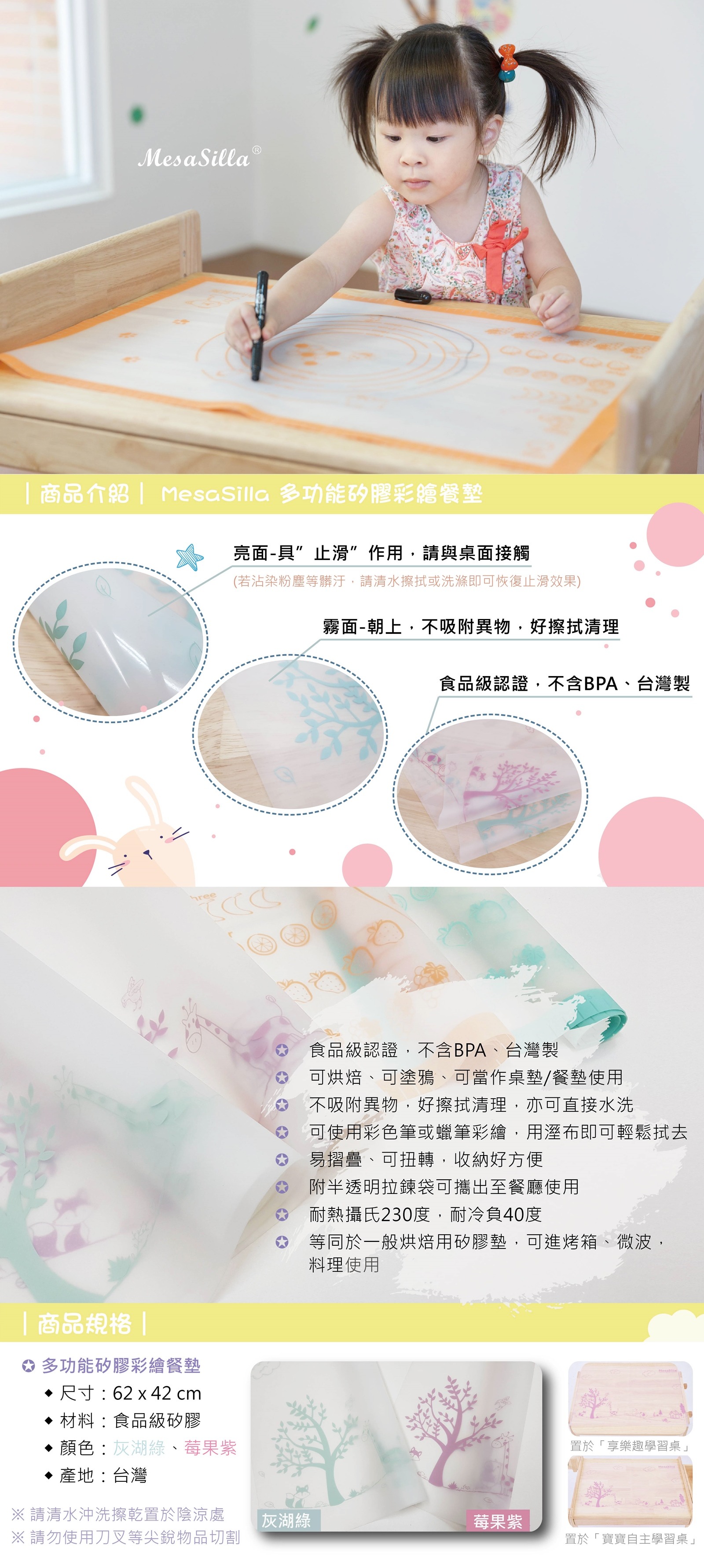 多功能矽膠彩繪餐墊-莓果紫
