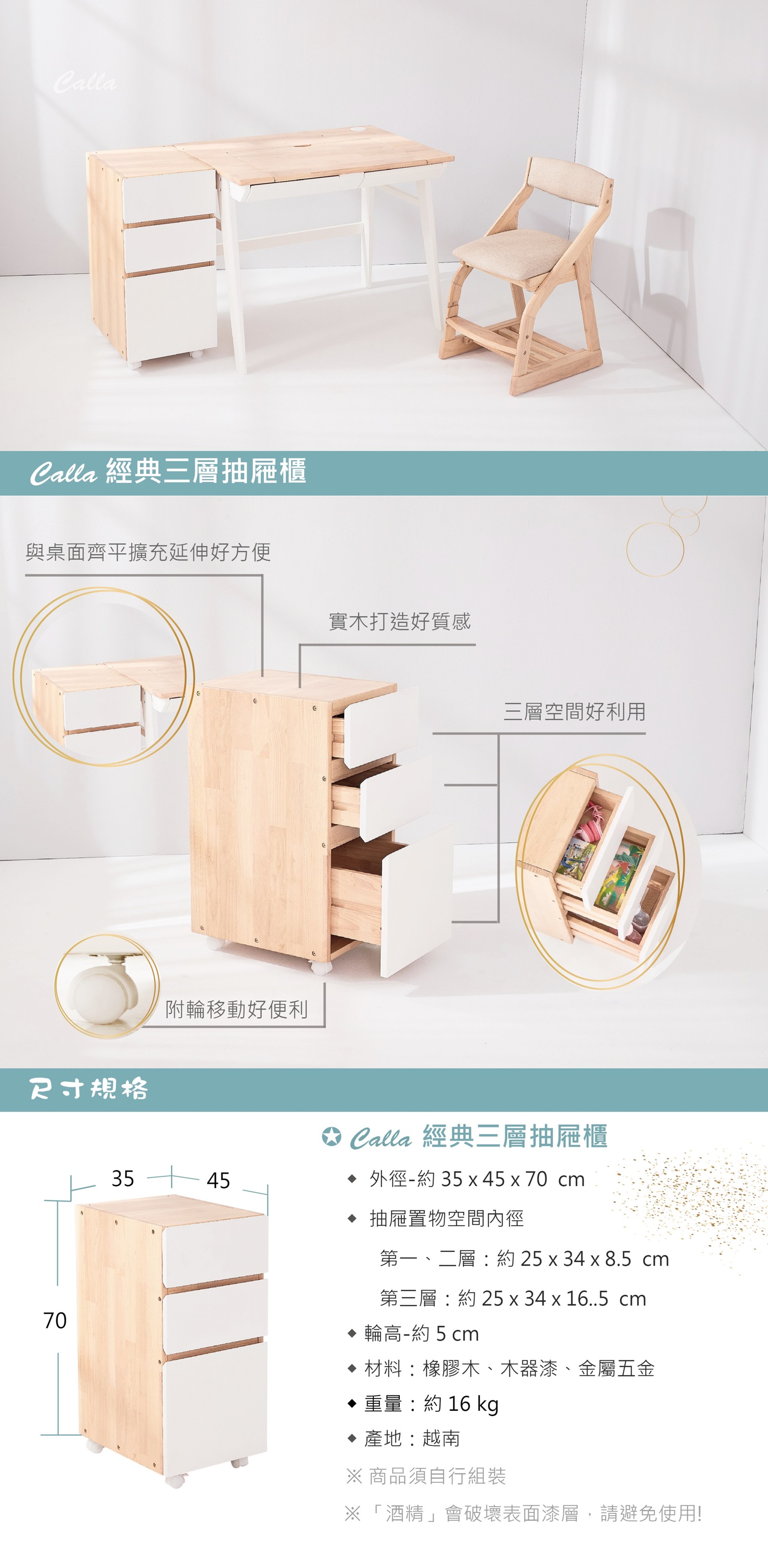 Calla 經典三層抽屜櫃